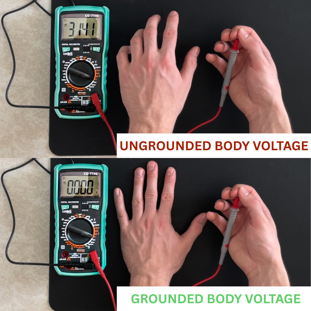 The grounding cable prevents this by allowing excess electrons to escape back into the earth, the path of least resistance.