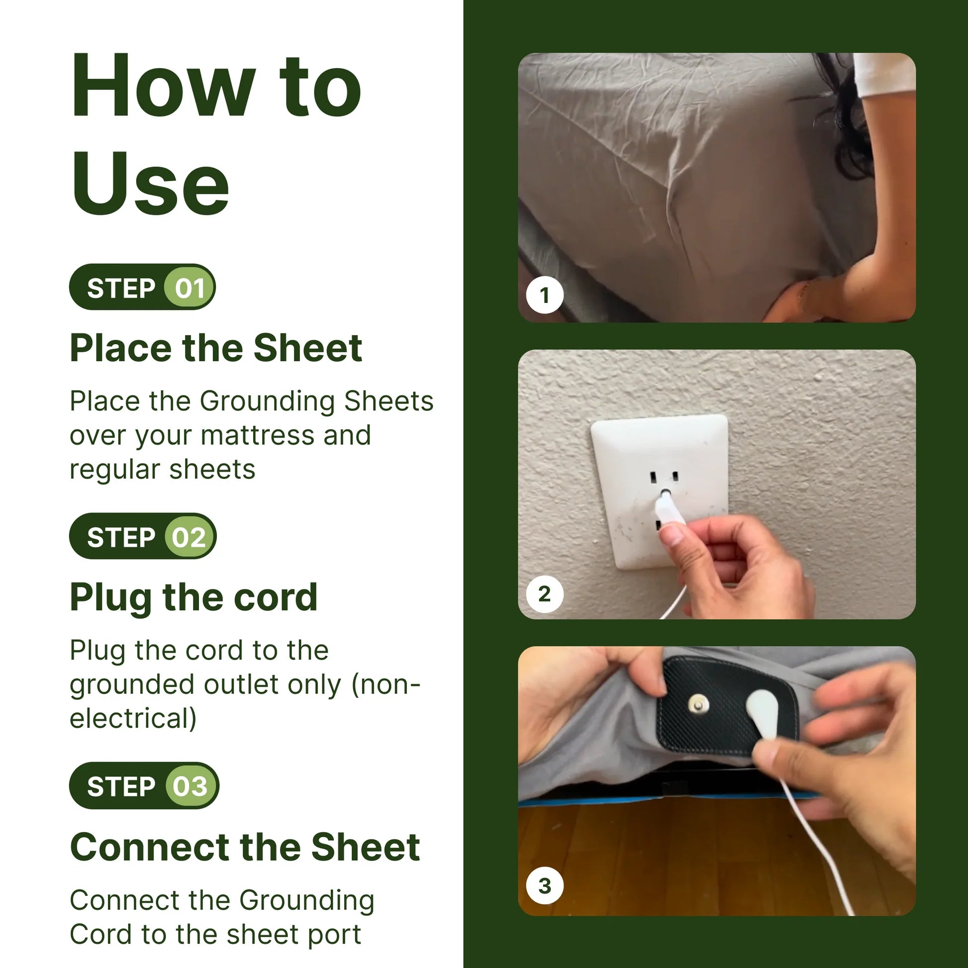Plug the Bedsheet into the grounding socket of your electrical outlet
